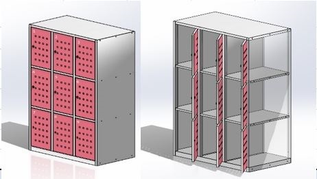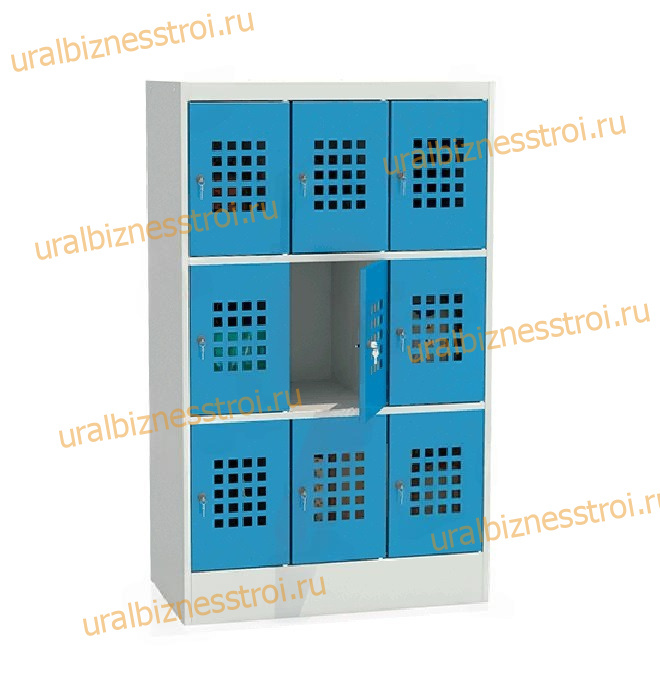 • Шкаф состоит из 3 секций,с 9 ячейками.