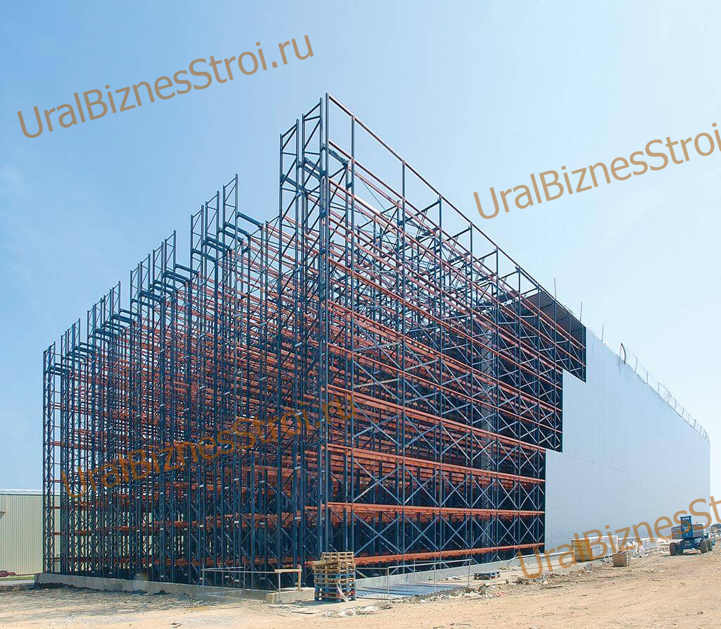 Самонесущий склад 35000х100000*15000мм 10 ярусов (Обшитый)
