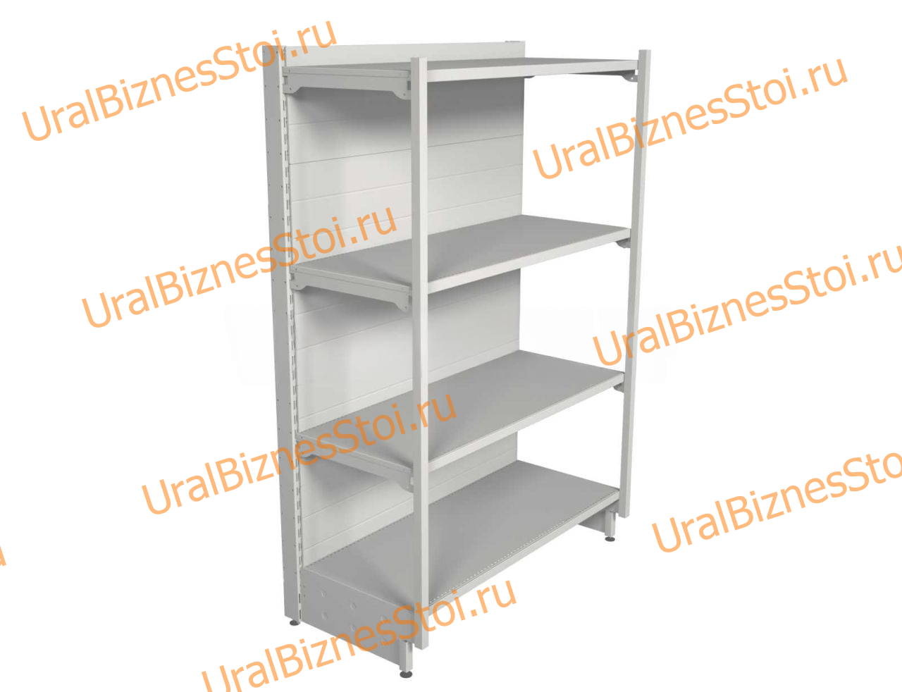 Каталог Стеллажи металлические Торговые стеллажи Торговые пристенные стеллажи (усиленные с передней стойкой) Торговый пристенный стеллаж с передней стойкой 1450*600*900 4 полки