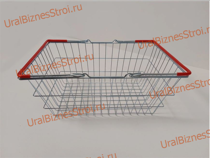 Каталог Торговое оборудование для магазинов Торговые корзины (метал./пласт.) Корзина покупательская, цинк хроматированный (20л) 2 ручки, ПВХ, цвет-красный